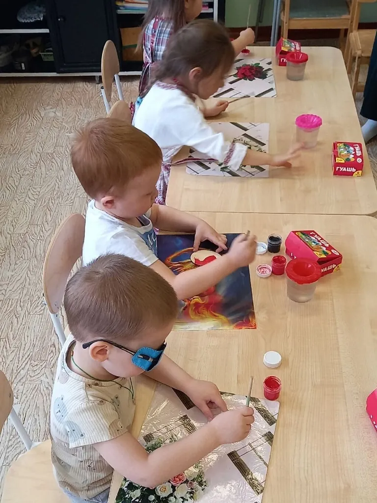 После литературной части участники перешли к творчеству. Каждый ребёнок получил возможность украсить деревянные заготовки в виде пасхальных яиц. Дети проявили фантазию: использовали яркие краски, блёстки, наклейки и ленточки, превращая простые заготовки в настоящие произведения искусства. Получившиеся магниты стали не только памятным сувениром, но и подарком для родных к Светлой Пасхе. Арт-час прошёл в тёплой, радостной атмосфере, объединив чтение, игру и творчество.